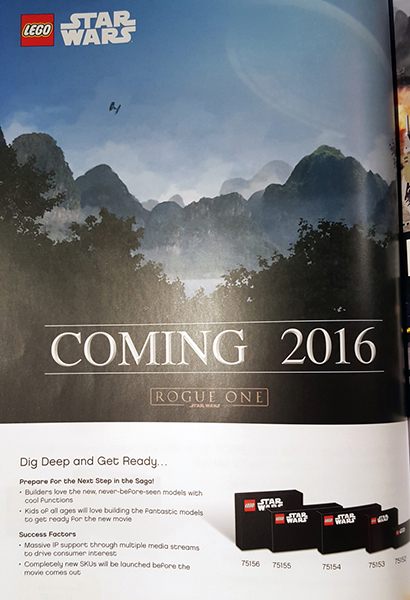 Via Mintinbox hebben we namelijk een Toy Fair retailer catalogus te pakken waarin we niet alleen de LEGO Star Wars zomer 2016 sets vinden maar ook de nummers en zwarte confidential dozen van de aankomende LEGO Star Wars Rogue One sets.