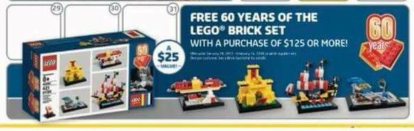 Via de Amerikaanse LEGO Store kalender die eerder vandaag is verschenen, is een nieuwe promotie opgedoken waarmee het 60 jarig bestaan van het LEGO steentje wordt gevierd.