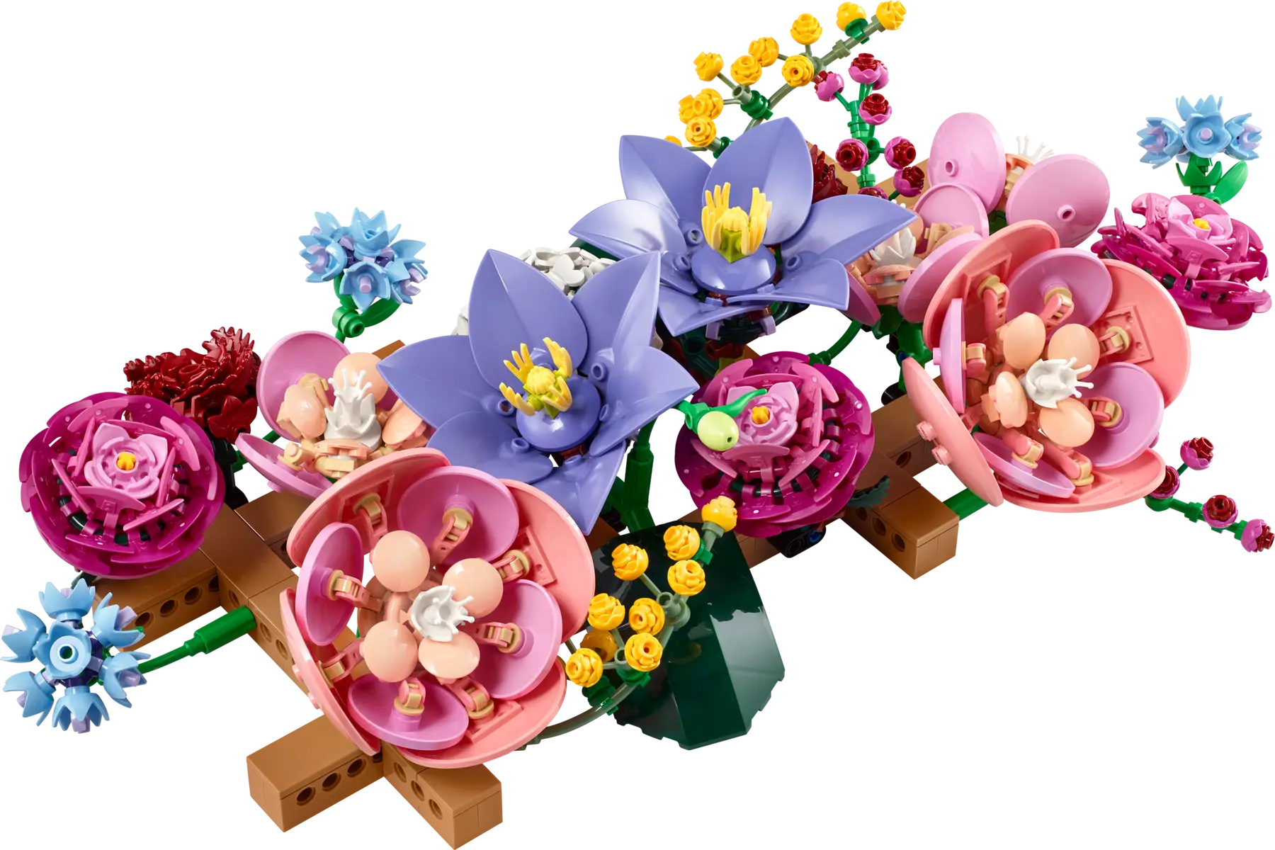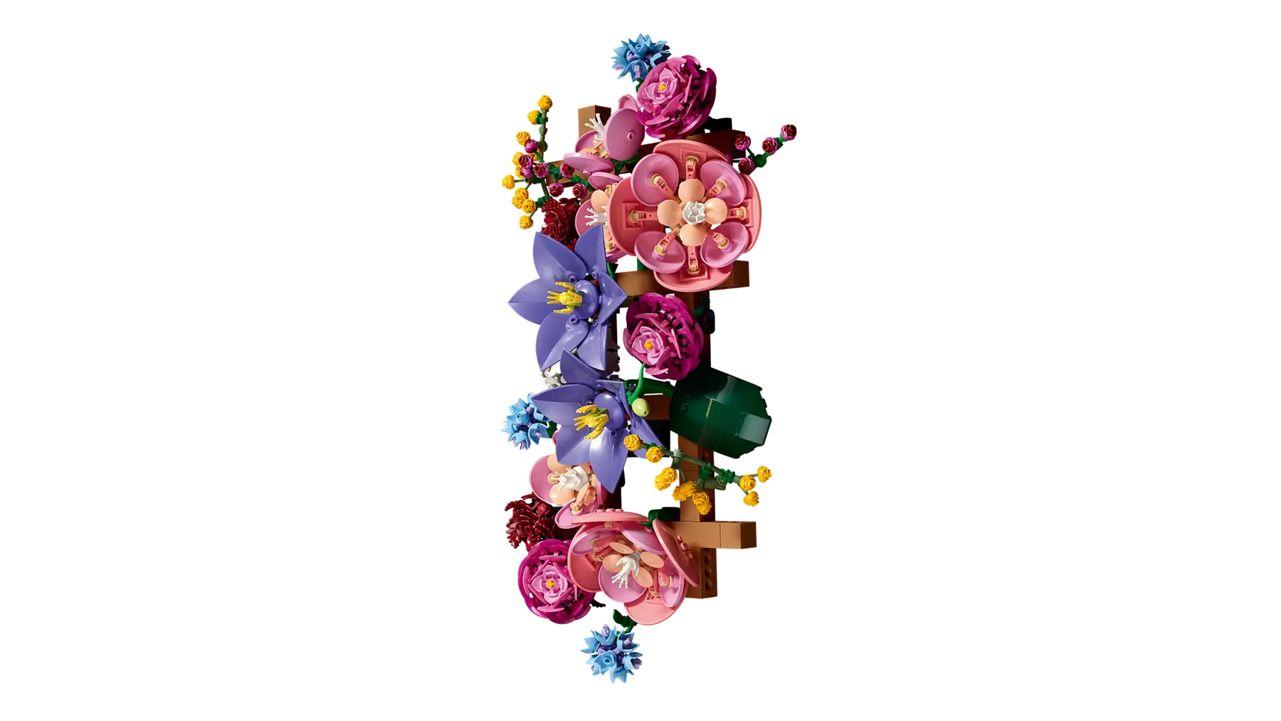 De LEGO Botanicals Flower Wall wordt opgebouwd met 879 onderdelen en bevat een prachtige mix van bloemen: 2 grote camelia’s, 3 kleine camelia’s, 2 clematissen, 3 ranonkels, 2 rode kunstrozen, 1 hortensia, 3 korenbloemen, 2 takken mimosa, 2 takken wasbloemen en 2 grote bladeren. Je kunt het bloemstuk zowel horizontaal als verticaal ophangen. Wil je een groter geheel? Dan kun je het eenvoudig uitbreiden met één of meerdere extra sets.