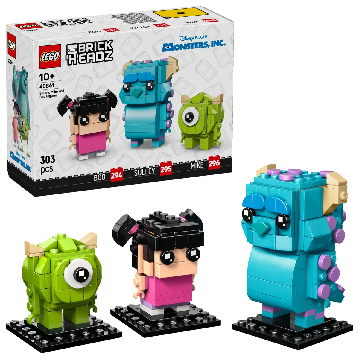 De LEGO BrickHeadz 40861 Sulley, Mike and Boo Figures is vanaf 1 maart verkrijgbaar via LEGO. De BrickHeadz worden opgebouwd met 303 onderdelen en heeft een adviesprijs van €24,99.