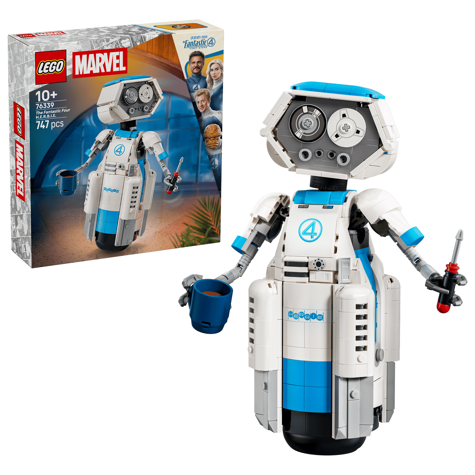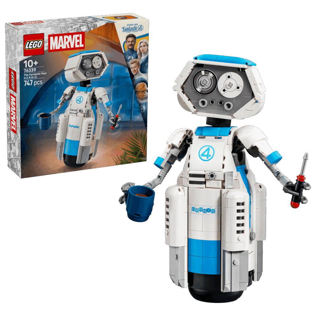 De LEGO Marvel 76339 The Fantastic Four H.E.R.B.I.E. is vanaf 1 augustus 2026 verkrijgbaar via LEGO en retailers. Deze sympathieke robot wordt opgebouwd met 747 onderdelen en heeft een adviesprijs van €69,99. Er is momenteel al een pre-order mogelijkheid via LEGO.