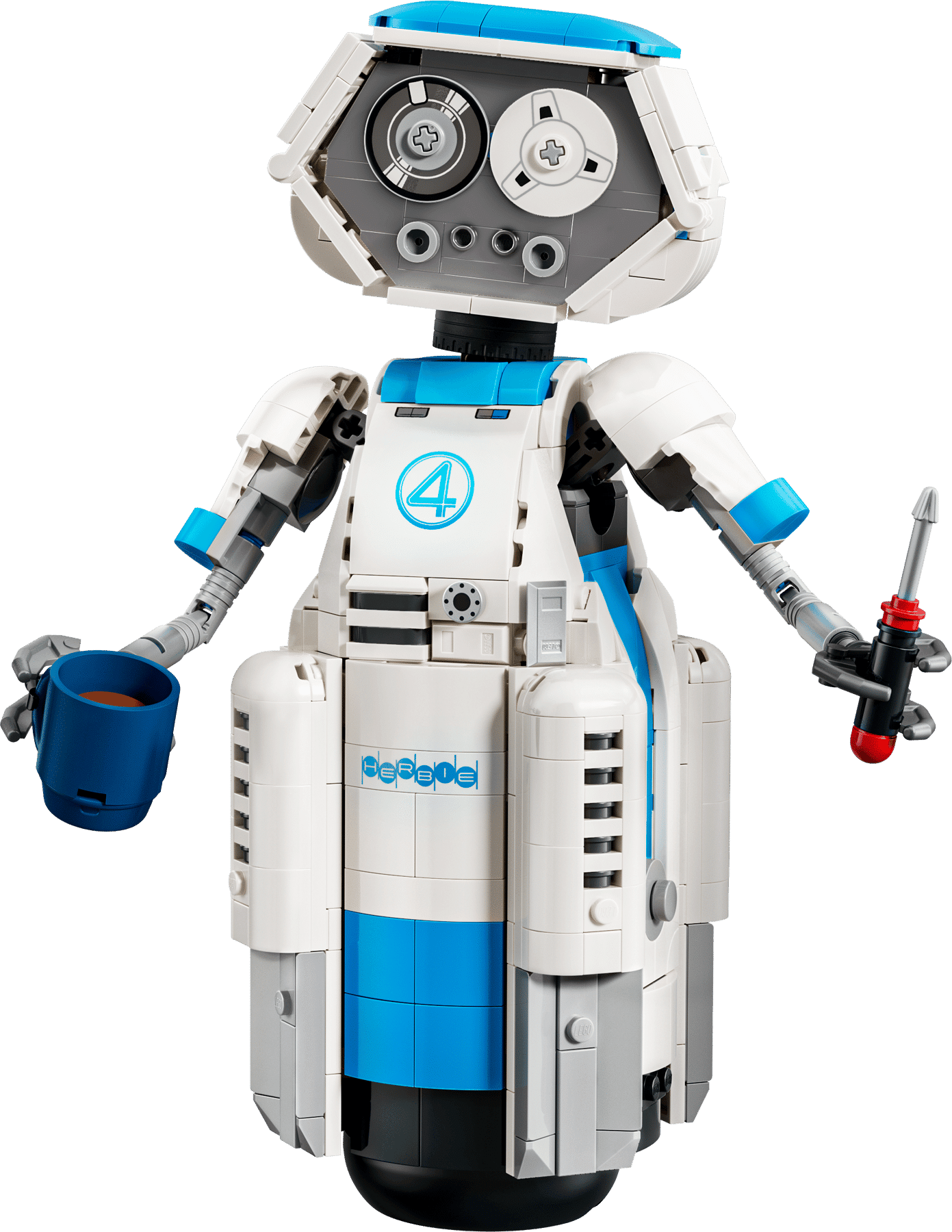 Was jij ook onder de indruk van de sympathieke robot H.E.R.B.I.E. uit The Fantastic Four: First Steps? Dan kan je binnenkort deze bouwbare replica van LEGO Marvel 76339 The Fantastic Four H.E.R.B.I.E. maken. Net zoals het filmmodel bestaan zijn ogen uit een bandrecorder, dat kan draaien als zijn hoofd beweegt. Met zijn armen kan hij een schroevendraaier en een drinkbeker vasthouden. H.E.R.B.I.E. meet 23 cm hoog, 15 cm breed en 9 cm diep.