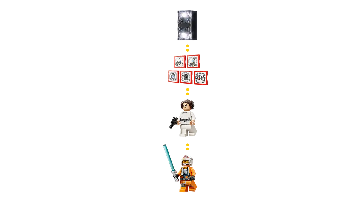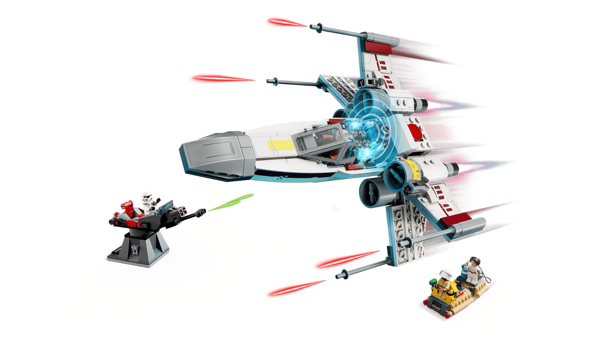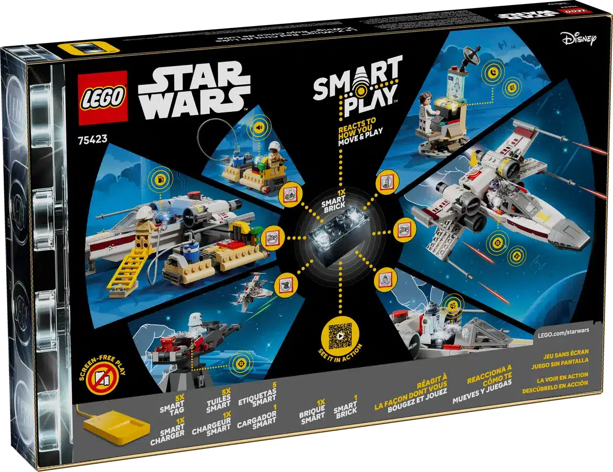 Een set van 584 onderdelen, inclusief twee SMART Minifiguren (Luke Skywalker in zijn iconische pilotenpak en Princess Leia), plus Luke’s trouwe metgezel R2-D2 en Rebel Crew- en Stormtrooper-minifiguren.