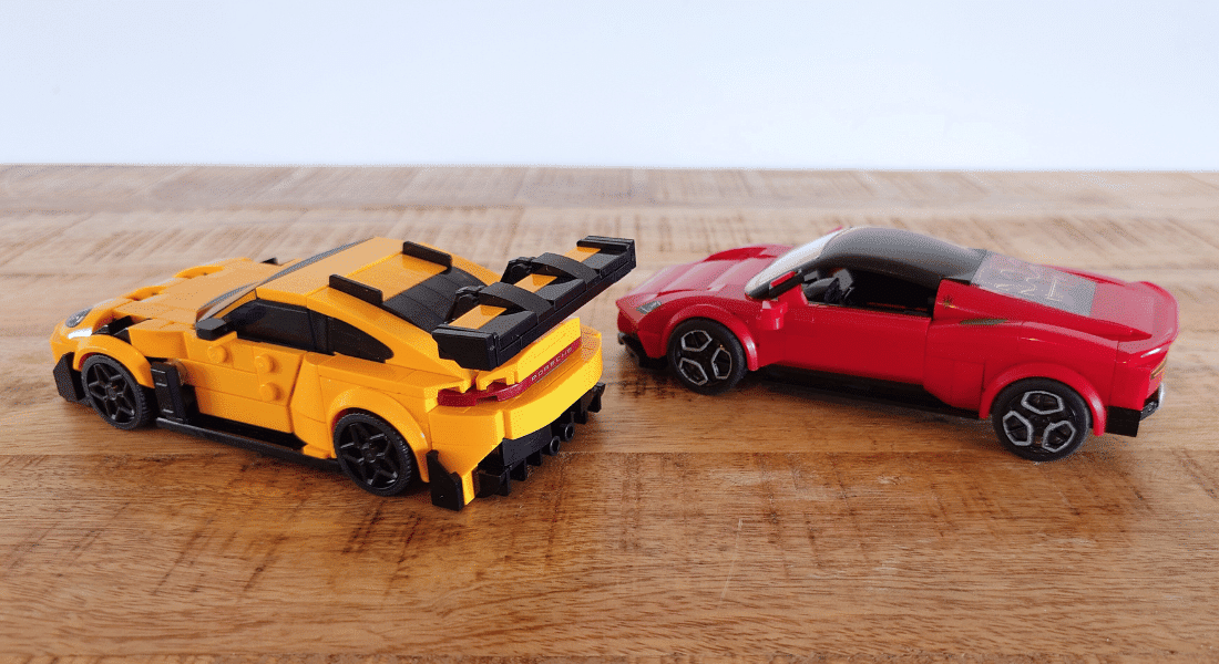LEGO Speed Champions Porsche 911 GT3 RS vs. Mattel Brick Shop Maserati MC20