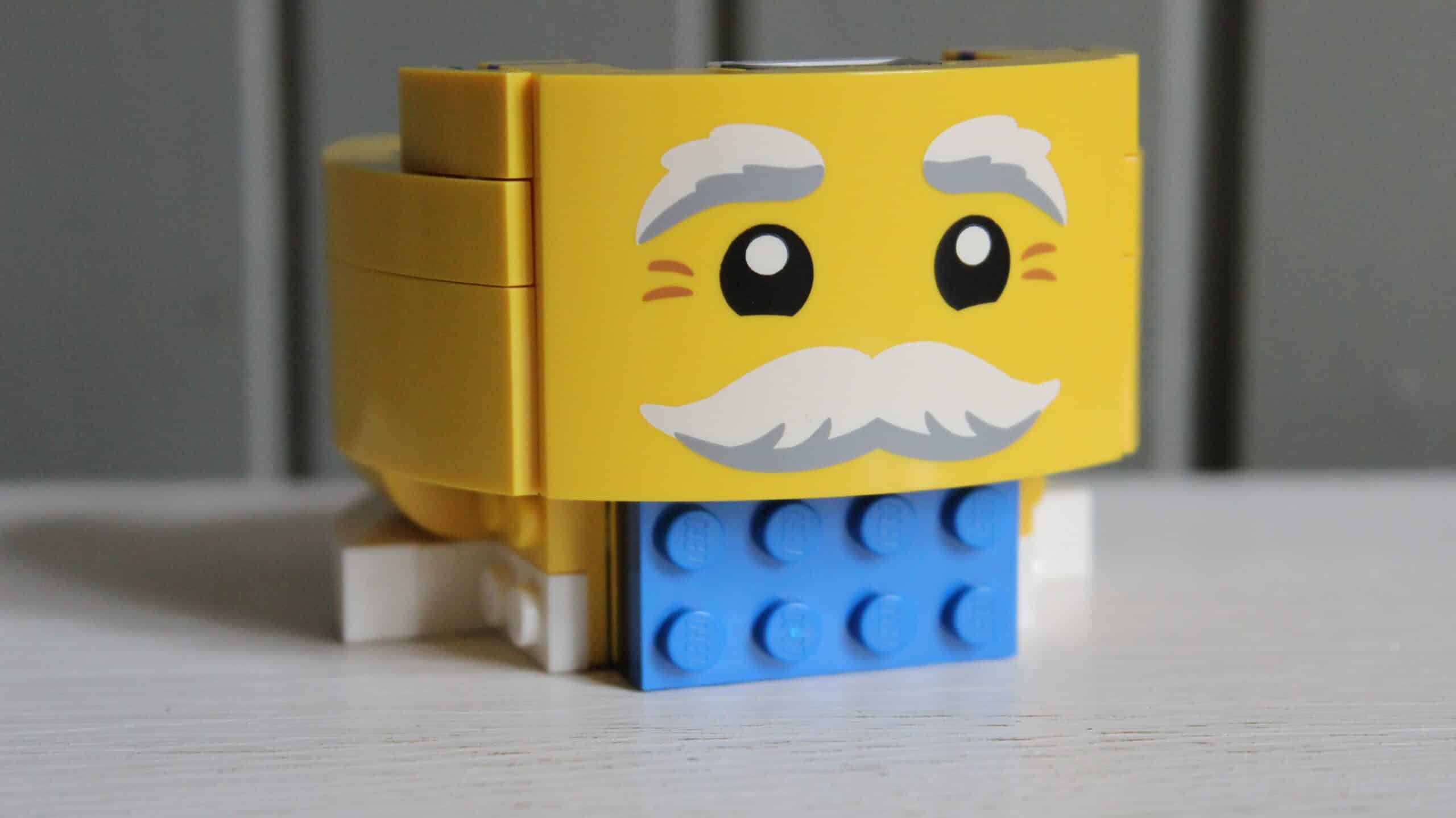 Ander leuk detail is de geprinte gezichtsplaat van de set. De snor is wel geprint maar niet of nauwelijks zichtbaar als de Up-Scaled Minifig – net als bij de originele Minifigures – wordt voorzien van een baard. Toch heeft LEGO dan de moeite genomen de gehele plaat te printen.