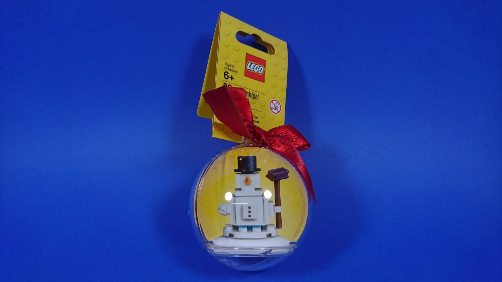 De inhoud van de set omvat de bouwbeschrijving en een zakje met 23 onderdelen. De meest interessante onderdelen van deze set zijn de beprinte witte 1×1 tile en de blauwe 2×2 transparante brick. Helaas is dit steentje bijna niet meer zichtbaar als de sneeuwpop opgebouwd is. Samen met de twee helften van de kerstbal en het rode lint komen we op een totaal van 26 onderdelen, met een adviesprijs van € 8,99 komen we uit op 35 cent per onderdeel. Een behoorlijke hoge prijs, maar te verklaren door de twee grote onderdelen die de bal maken. Desondanks blijft de prijs een dingetje.