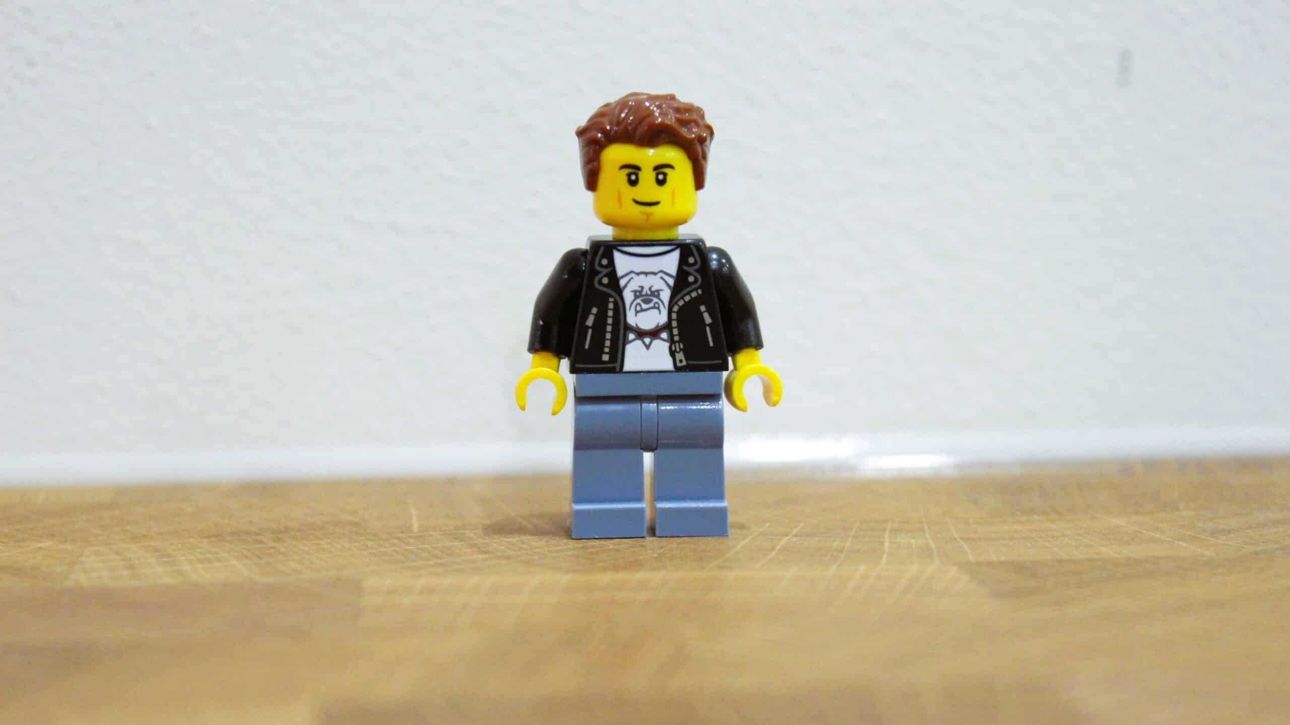 De Minifig die gekozen is voor deze LEGO City 60485 Hot Rod is een traditionele en stoere bink Met een flinke kuif in zijn haar, één stoere gezichtsuitdrukking en een fantastisch leren jack met een bulldog op zijn shirt, past hij wel echt heel goed bij de Hot Rod. De benen zijn zonder print, maar dat is ook helemaal niet nodig voor deze Minifig.