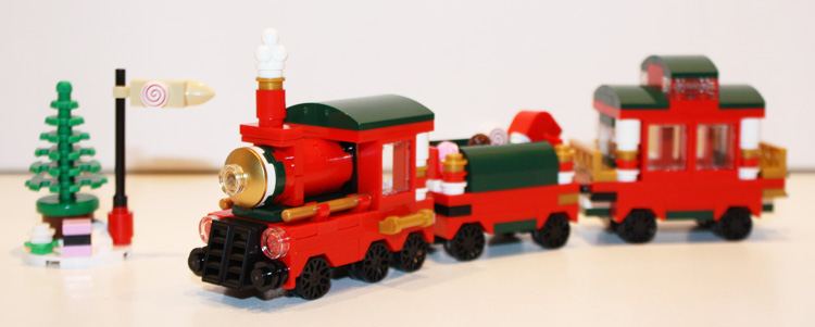 We beginnen met de bouw van de trein bestaande uit 3 delen. Allereest bouwen we een gedetailleerd stoomlocomotiefje, vervolgens een goederenwagon gevuld met snoepgoed en tot slot een passagierswagon. Helaas is het treintje niet op minifiguurschaal dus passen er geen minifiguren in. Wel is de goederenwagon gevuld met lekkernijen en cadeautjes! Het treintje bouwt lekker weg en we zien wat kleine maar leuke technieken voorbij komen. Door de voornamelijk rode en groene kleuren is het treintje volledig in de kerstsfeer. Ook hebben de LEGO designers wat witte en gouden elementen toegevoegd zodat de kersttrein nog beter tot zijn recht komt.