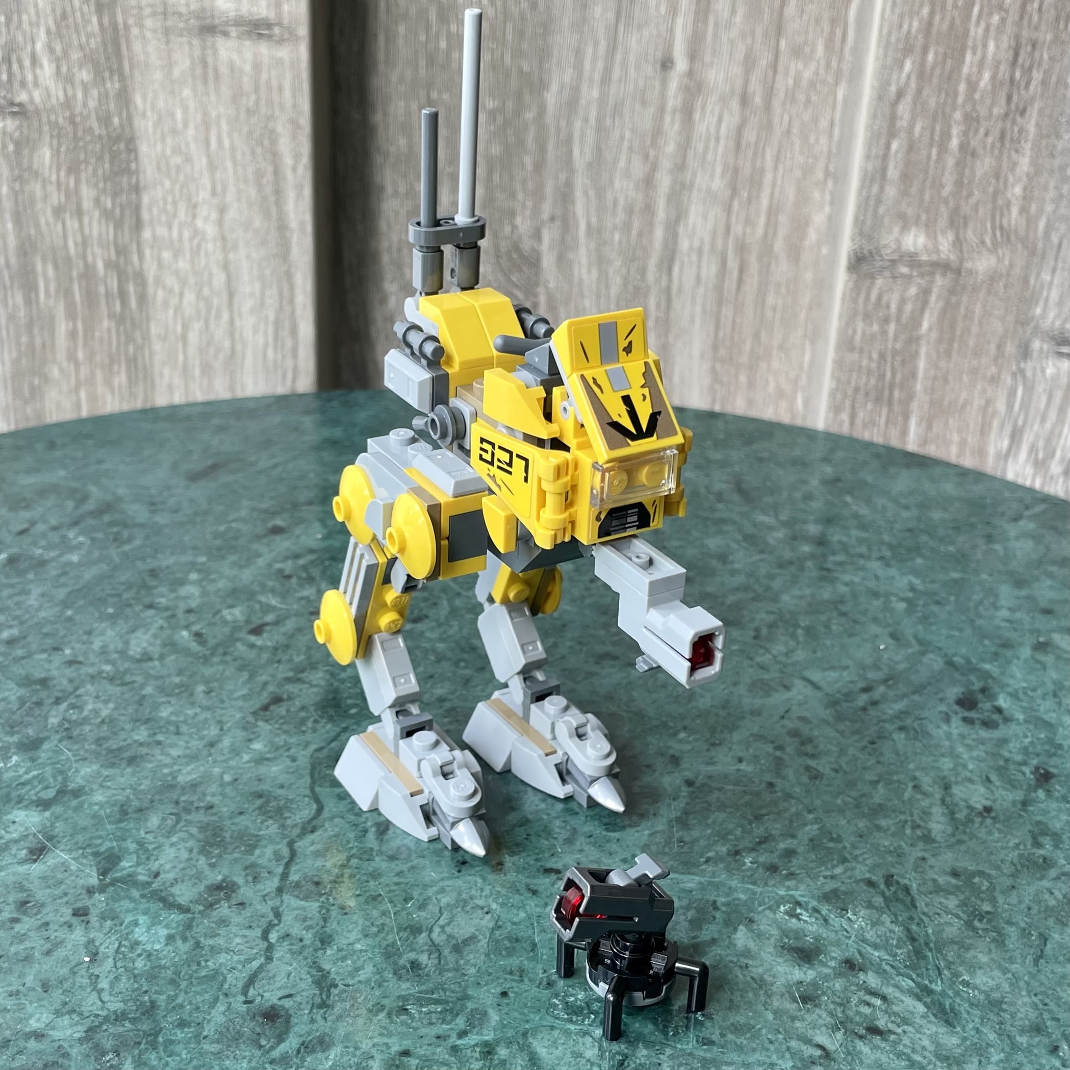 Naast de bouwbare Battle Droid, bevat de Battle Pack een simpele Stud Shooter op een standaard en een AT-RT walker. Geheel in de stijl van de 327th Star Corps Clone Troopers is de hoofdkleur van de walker geel. De AT-RT walker heeft in de cockpit plek voor één Trooper. Aan de achterzijde van de walker zijn twee clips gemonteerd voor de verrekijker en blaster. Natuurlijk mag de Stud Shooter aan de voorzijde niet ontbreken. Door een aantal scharnierpunten in de poten is het mogelijk om de AT-RT walker verschillende poses te laten aannemen, al moet gezegd worden dat hij hierdoor niet echt stevig op zijn poten komt te staan. De stilstaande positie is de meest stabiele pose.