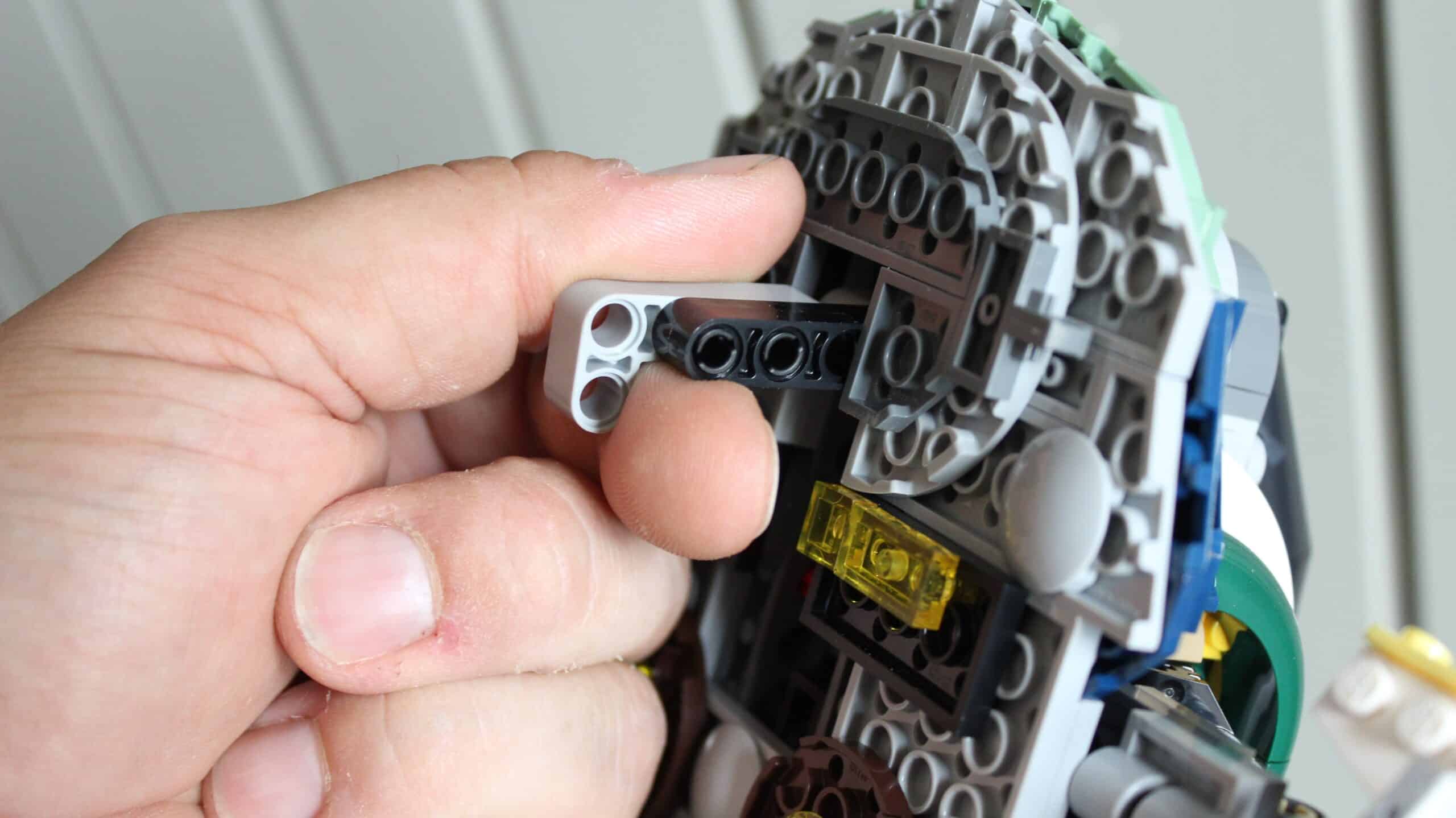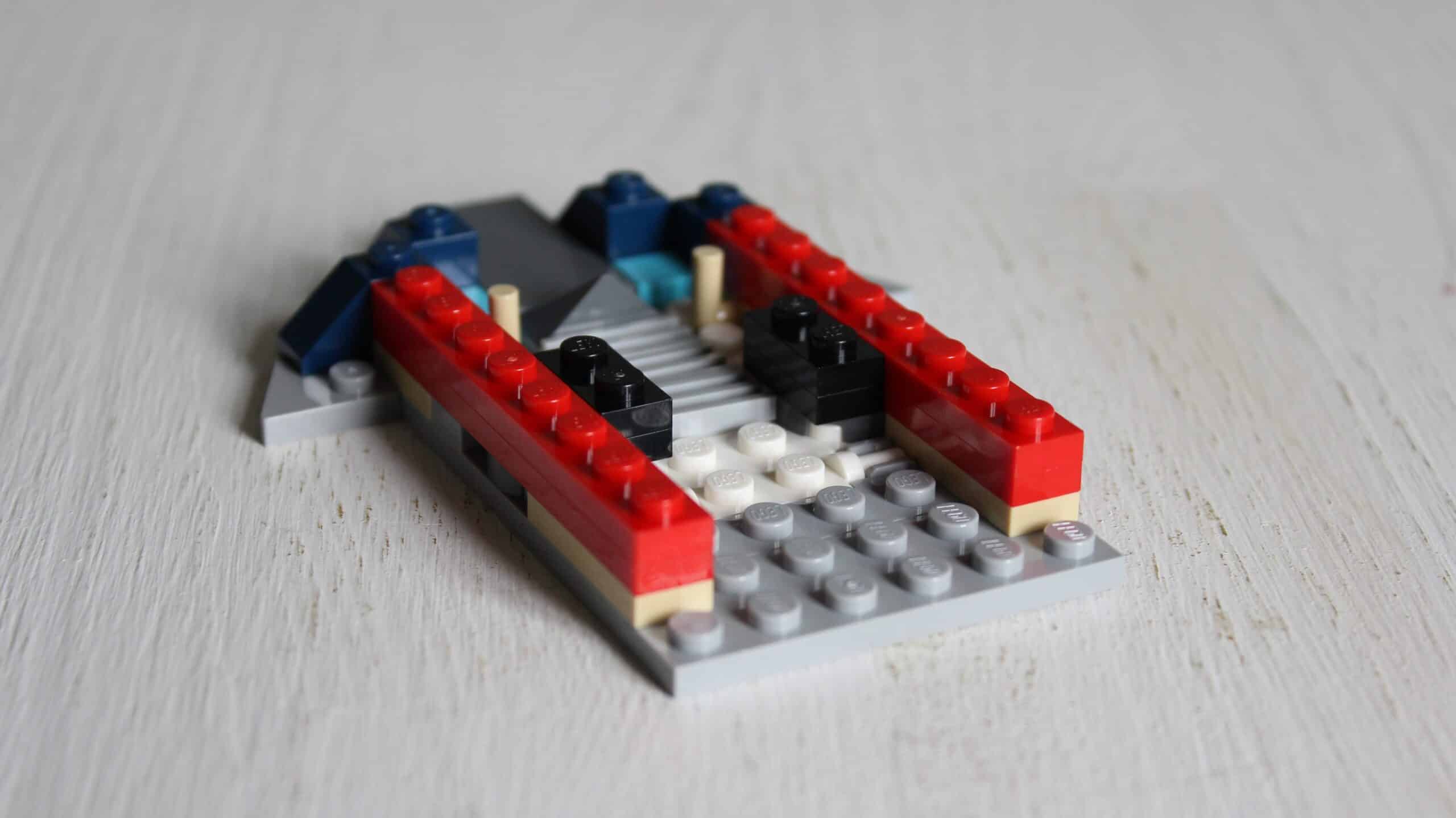 Het laatste wat aan het schip wordt toegevoegd, buiten de enorm leuk te bouwen details, zijn de vleugels. Deze roteren zoals gewenst – doch zeer langzaam en stroef – naar gelang de positie van het schip verandert (verticaal of horizontaal). Het blijft een leuk stukje techniek waarbij de designer kijkt naar het gewicht van de LEGO-steentjes om de vleugels door middel van zwaartekracht te laten draaien. Dan denk je, we zijn klaar, maar niets in minder waar.