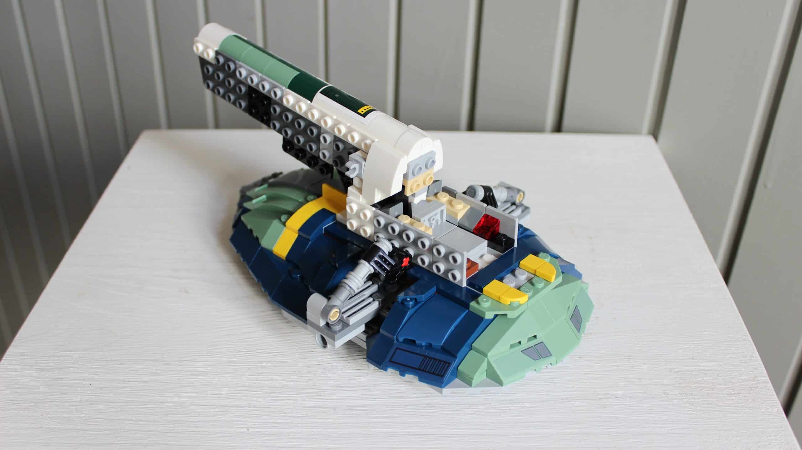 Het kleurenschema en de rondingen zijn ook uniek voor deze variant van de – ja mogen we het zeggen? – Slave I. In vergelijking met de laatste versie hiervan is er wederom nagedacht om het geheel nog ronder te doen aflopen waarbij de set qua design nog weer een stukje beter uit de verf komt. Met wat goed geplaatste stickers – niet heel vervelend om aan te brengen – wordt het uiterlijk goed bevorderd.