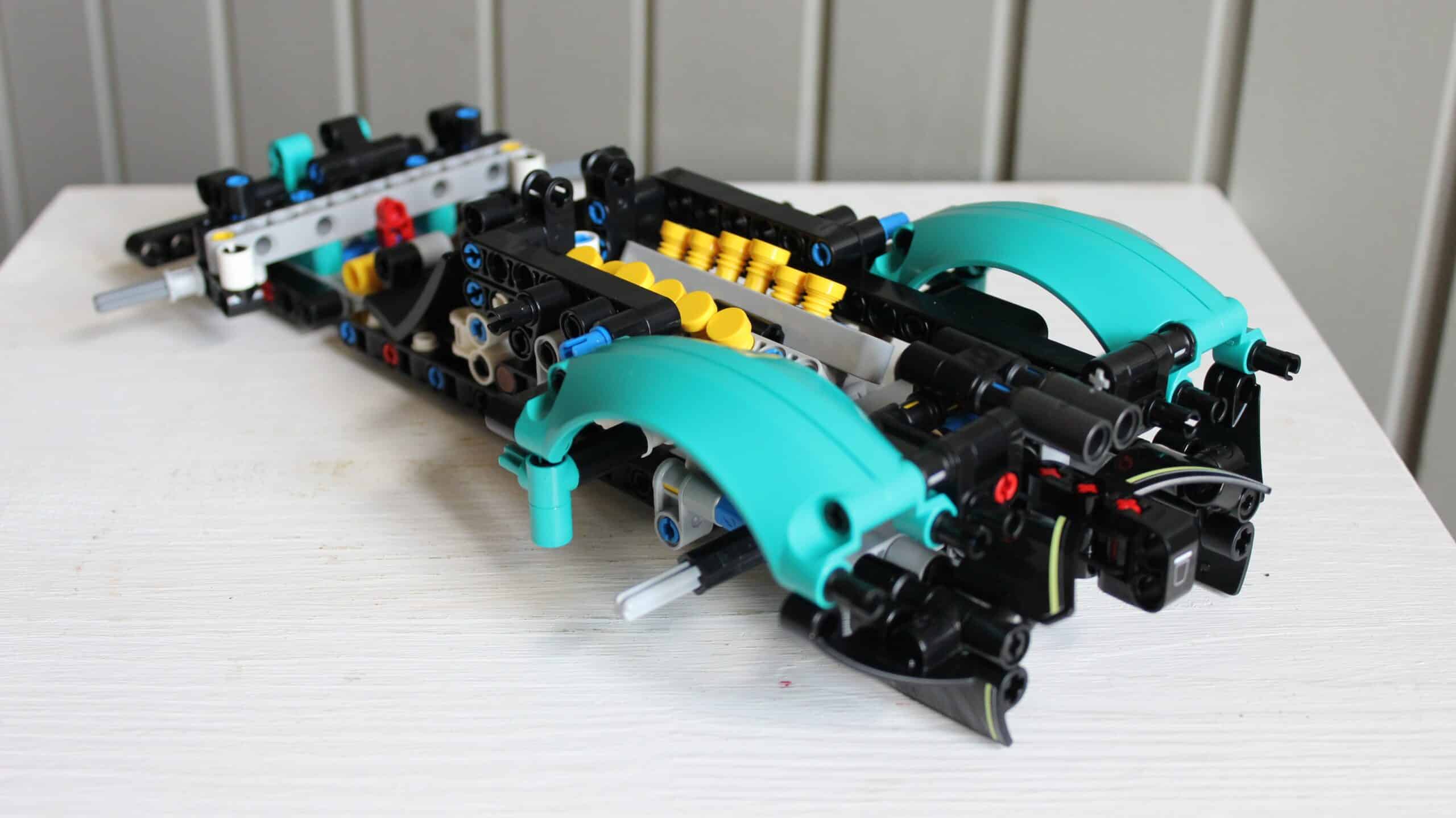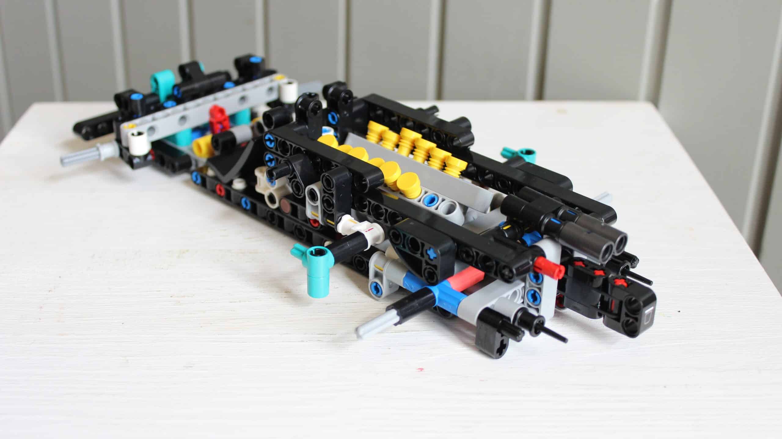 Als je verder bouwt kom je erachter dat die beweeglijke elementen voor de stoelen zijn, die op dat moment nog steeds geen vaste positie in de set hebben gekregen. Dit om de stand van de stoelen zo optimaal mogelijk weg te werken in de set. Aan de achterzijde van de auto wordt begonnen met de 6.5 Liter V12 motor. Als je fan bent van LEGO Technic auto’s weet je dat dit een essentieel onderdeel van de set is. Even opletten hoe de stand van de schijven precies moet staan, maar elke getrainde bouwer kan dit – figuurlijk gesproken – met de ogen dicht.
