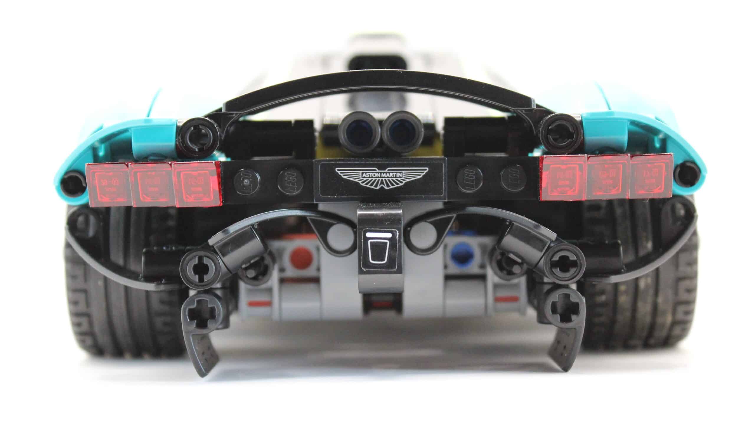 Het plaatwerk – en dan vooral de kleur – van de LEGO Technic 42208 Aston Martin Valkyrie zijn enorm goed in lijn gebracht met het origineel. Het vormen van de kenmerkende kromming zal geen makkelijke taak zijn geweest voor de designers, maar door wat slimme techniekjes en vooral specifieke parts komt het toch goed uit de verf. Het is een simpele toevoeging, maar de achterlichten staan wel echt heel bruut. Je krijgt bijna het idee dat er meer aandacht is gelegd op de achterkant zo stoer en gelijkend mogelijk te maken dan de rest van de auto. Het stickers plakken op de sideskirts is iets waar de schoen zich toch een beetje wringt. Aangezien het één doorlopende lijn is, wordt de mogelijkheid vergroot dat de detaillering mislukt als je eens wat scheef zit met plakken. Het is een punt van aandacht.