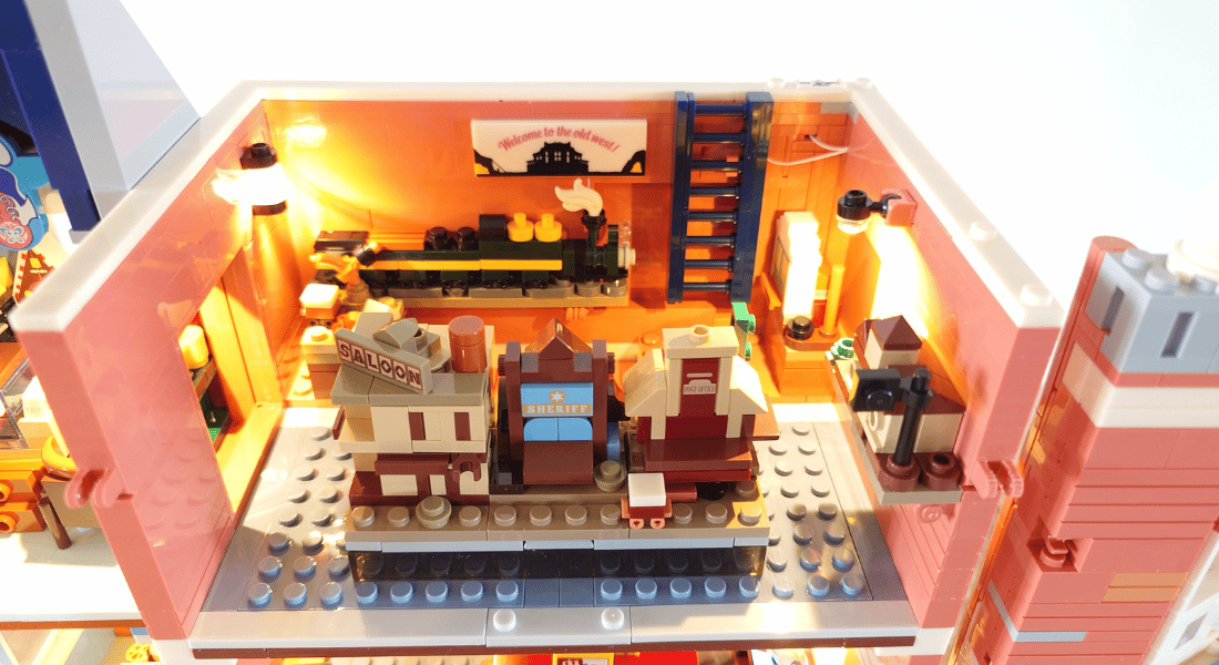 - Tweede verdieping: Volledig gewijd aan Lumibricks-sets uit het Old West-thema en de werkkamer van de speelgoedreparateur.