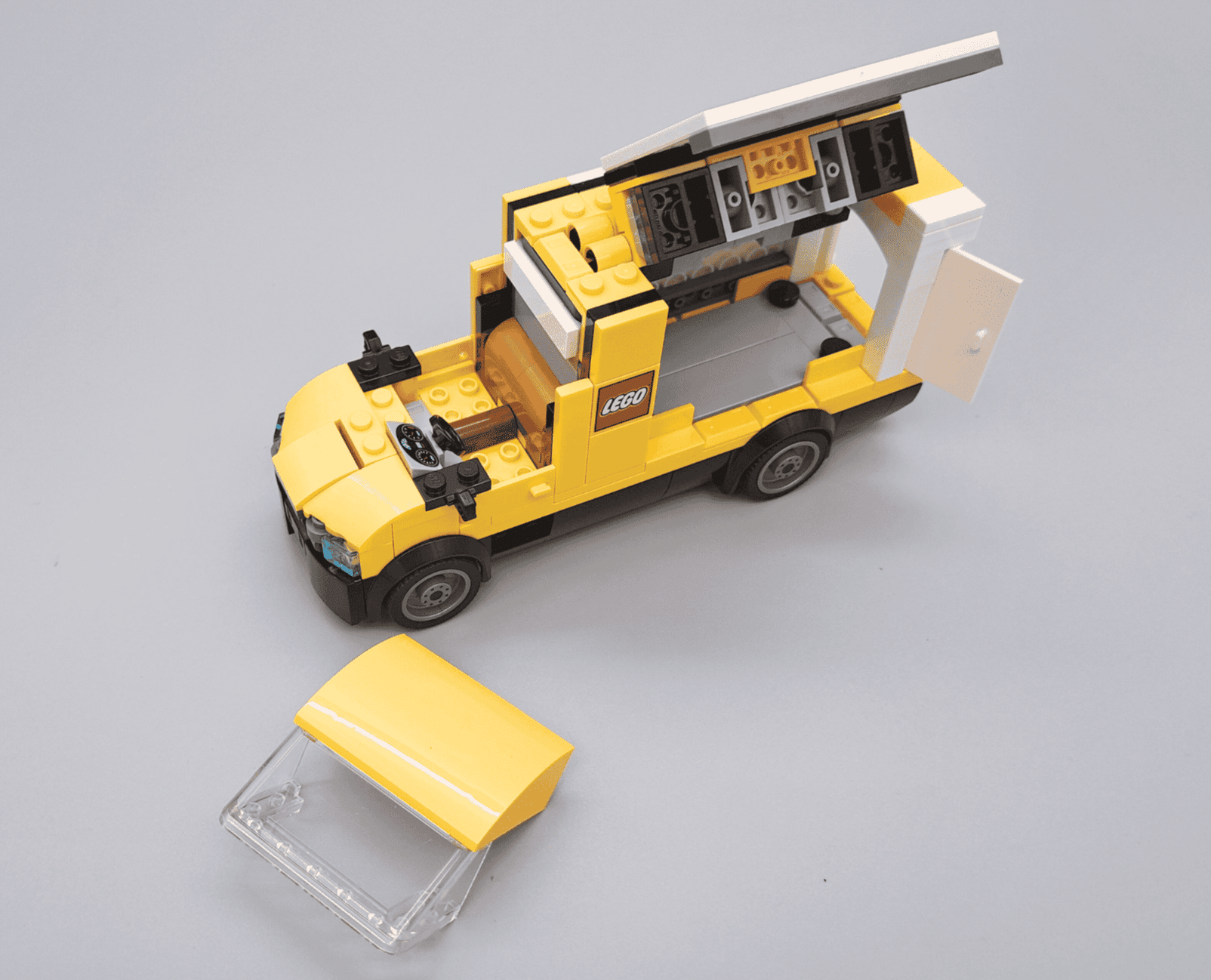 Wat voor hoge ogen gooit zijn de onderdelen met opdruk. Niet alleen het LEGO-logo, maar ook de zijpanelen en de sets zijn een print. Dit zagen we al met de Yellow Delivery Truck en is het goed om dit hier weer te zien.